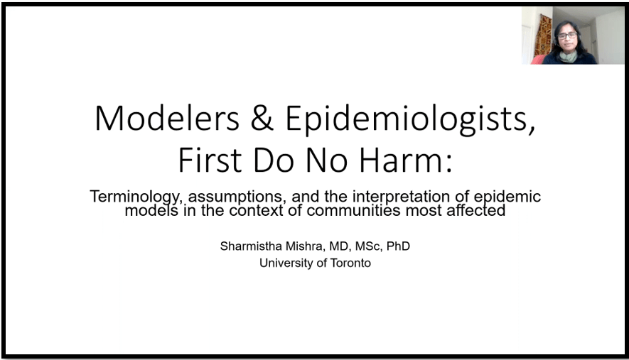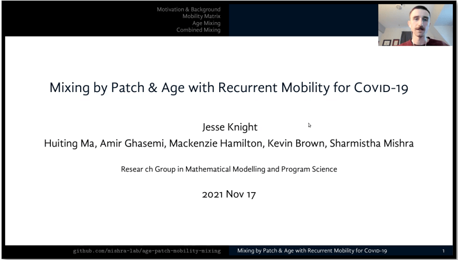 Public Dissemination Activities Beyond Instantaneous Partnerships: Capturing Partnership-Level Herd Effects In Compartmental Models Of Sexually Transmitted Infections. Society for Medical Decision Making (SMDM) 44th North American Meeting. 2022 Oct. 14 Roundtable Discussion: Beyond triage and data culture. Who Cares? Speaker Series. 2022 Mar. 11. Special EDI Session 1 – Modellers, first do no harm: terminology, assumptions, and the interpretation of epidemic models in the context of communities most affected. The Fields Institute for Research in Mathematical Sciences. 2021 Dec 07. Contact patterns by age and geography with recurrent mobility: influence of relaxing assumptions. Epidemics 8 Conference. 2021 Nov 30 – Dec 03. Mixing by Patch & Age with Recurrent Mobility for Covid-19. The Fields Institute for Research in Mathematical Sciences. 2021 Nov 17. Led By: Jesse Knight Benefits of modeling and data linkage to inform pandemic inequality and genomic epidemiology. Toronto, Ontario, Canada. 2021 Oct. How to get away with inequities in outbreaks & epidemics. Centre for Gender & Sexual Health Equity Speaker Series. Toronto, Ontario, Canada. 2021 Jan 28. How to get away with inequities in outbreaks: a SARS-CoV-2 modeling story. 2020-2021 COVID-19 Math Modelling Seminar. Toronto, Ontario, Canada. 2020 Nov 10. Three principles: thinking about HIV prevention. Public Health Action, HIV Prevention Forum. Toronto, Ontario, Canada. 2018 Feb 7. Model thinking: maths, code, and controlling epidemics. St. Michael’s Hospital, Keenan Popular Science Lecture Series. Toronto, Ontario, Canada. 2016 Sep.